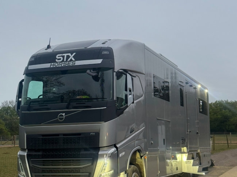A superb example of the ever popular STX 777 special edition 7horse 26t based on the mighty Volvo FH540 chassis. Finished in Aston Martin Titanium Silver, with a single pop out and pop up, this classic STX design lends itself to the professional rider needing comfortable living with maximum horse space combined. Cost new today £395,000 + VAT, so great saving !!