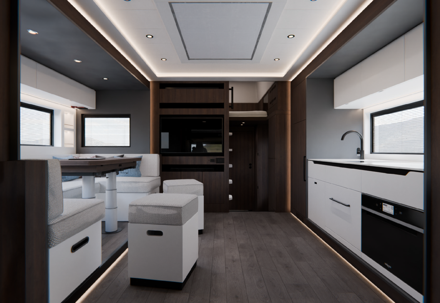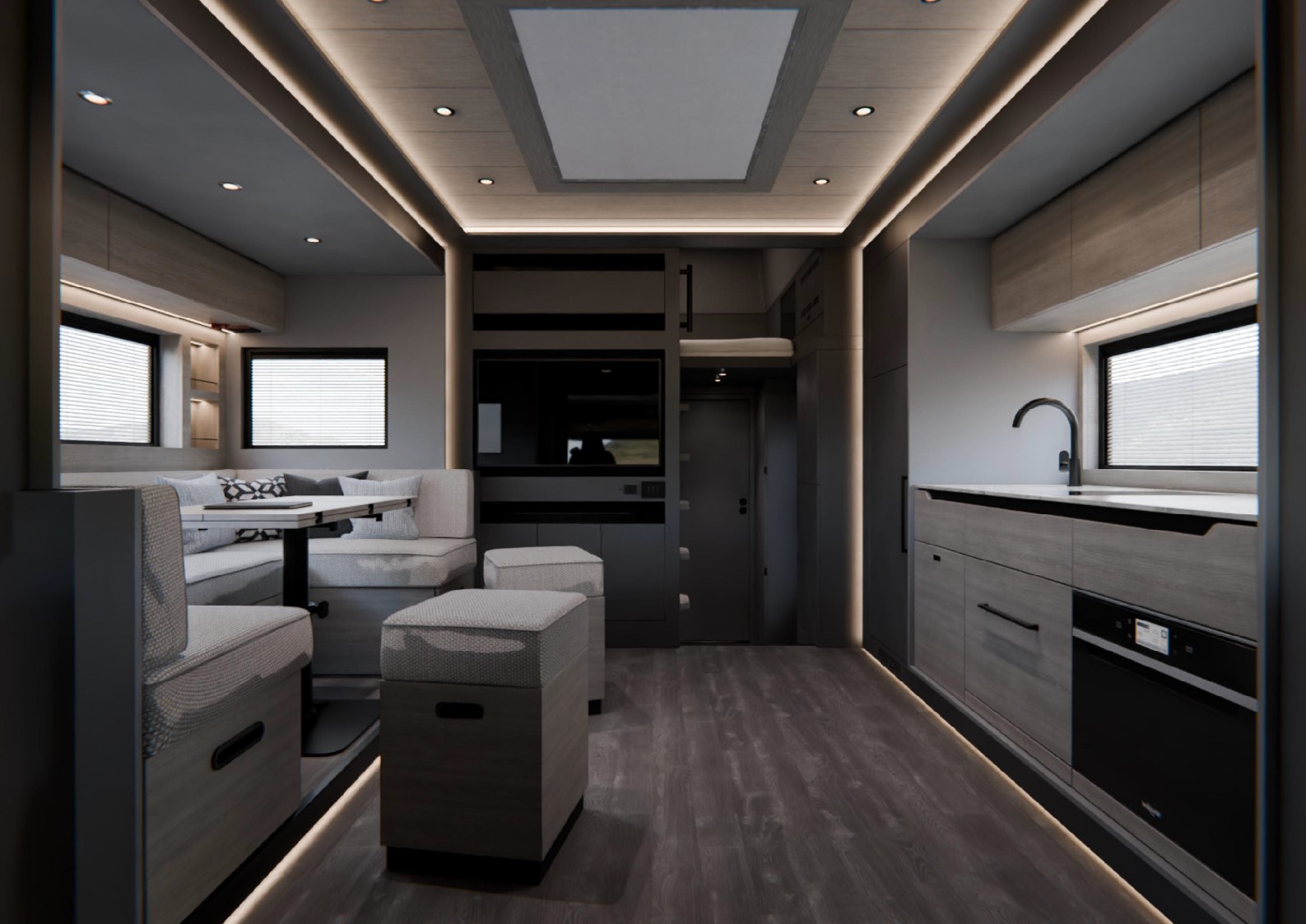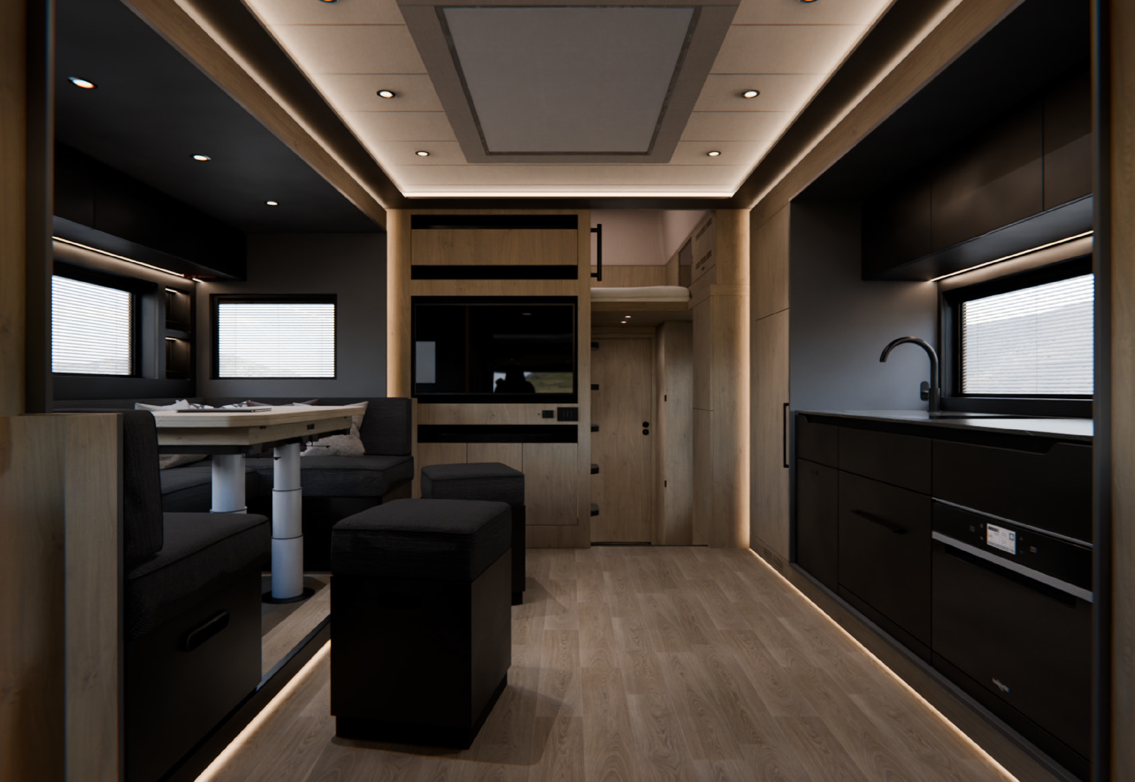 Everything we design starts with the horse area. With the safest and most modern horse area in the horsetruck industry, we are unrivalled in comfortable horse transport. With enclosed rug lockers, groom bed entrance, soft feel flooring, and plenty of ventilation, this really is as good as it gets.